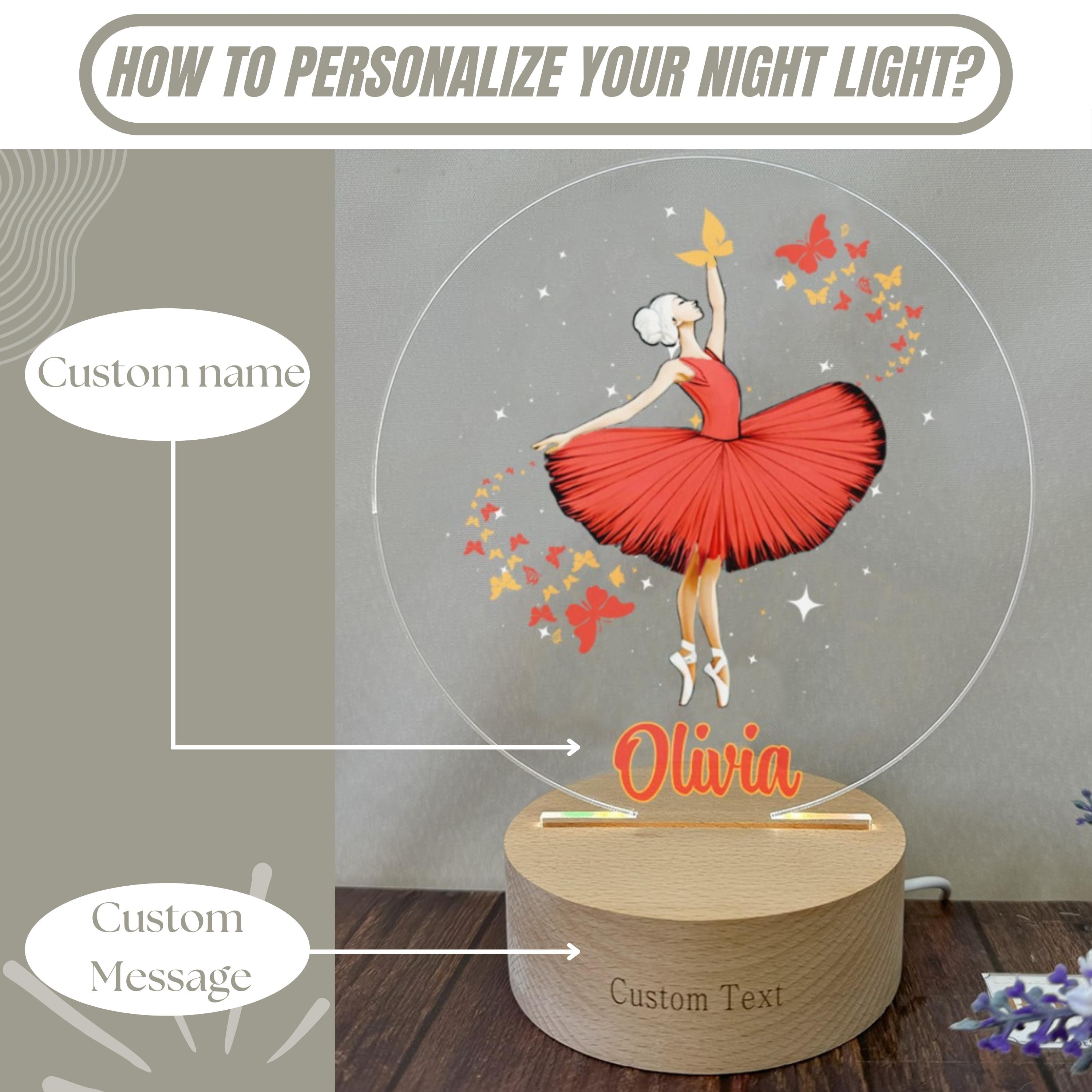 Custom Red Ballerina Night Light Gifts for Dancers for Bedroom Decor | Custom Your Girl Name for Ballet Lover and Birthday Gifts for Dancers