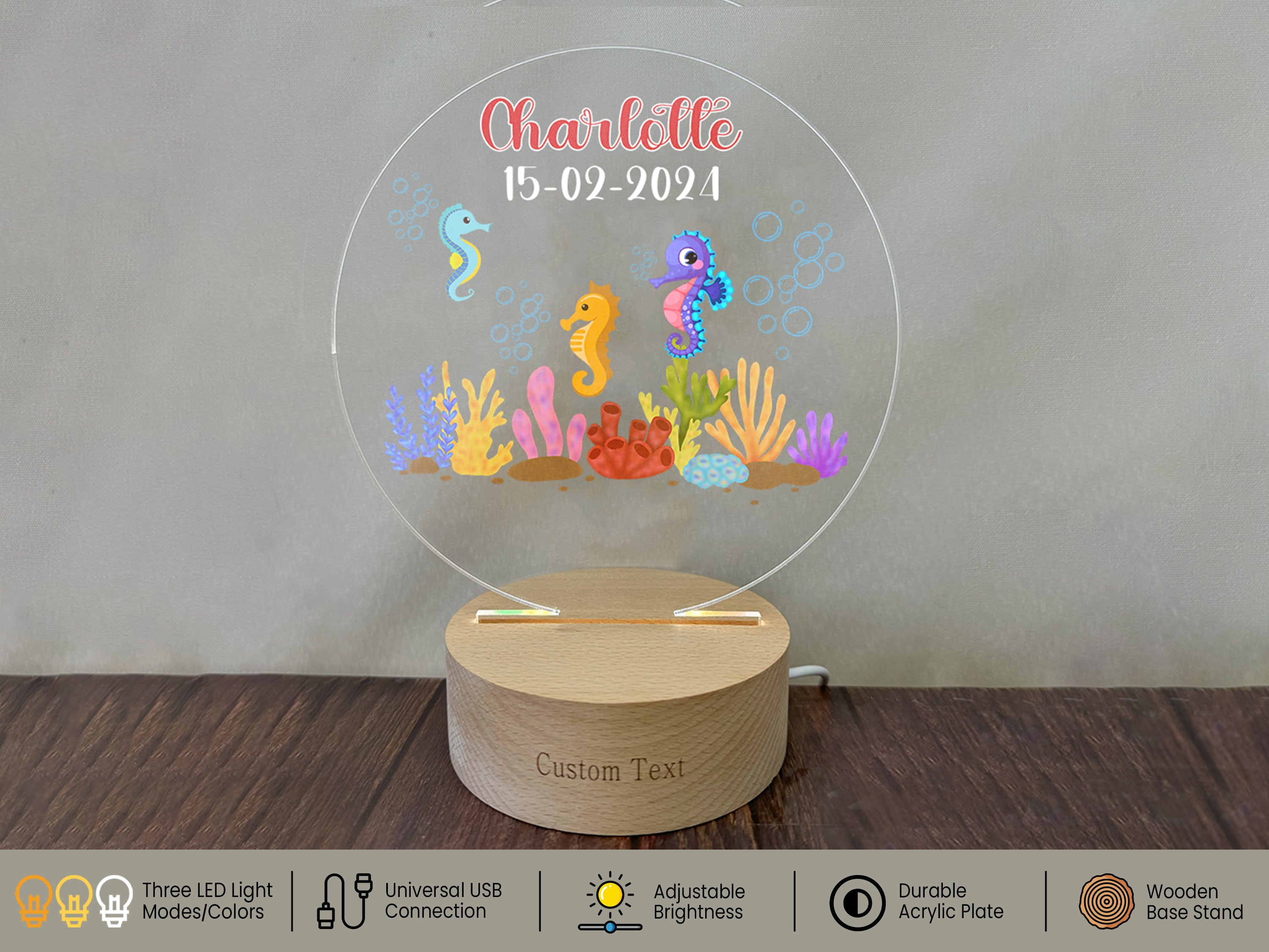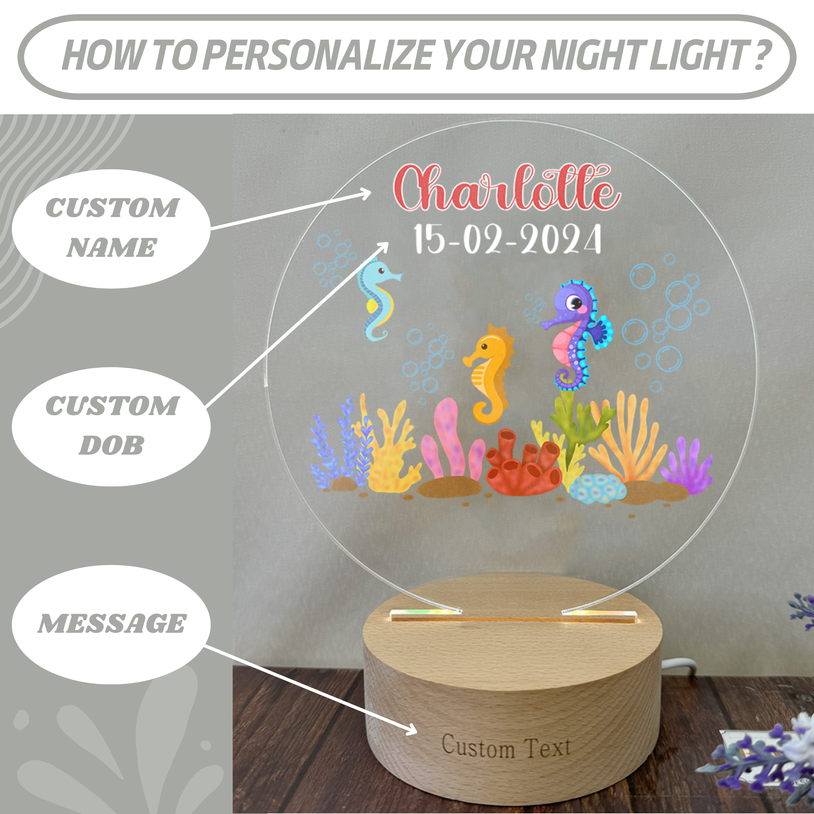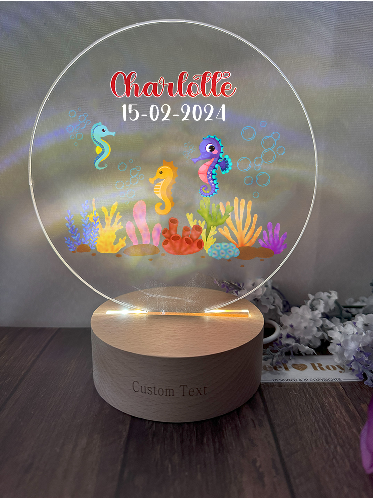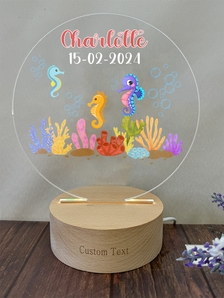 Seahorse Fish New Born Personalized Name Night Light for Baby Room Décor - Custom Your Baby Name on Lamp Gift